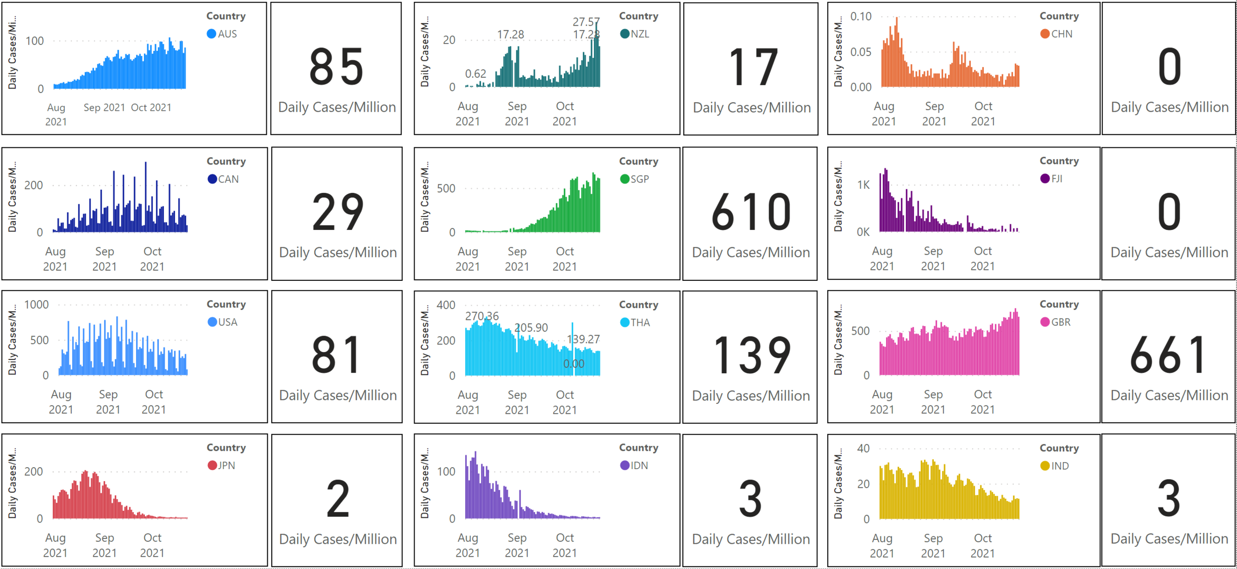 Conversely, the United Kingdom, despite a clear mandate from Government to “live with Covid” and with relatively few restrictions on the ground, has seen cases spiral to 661 new cases per million. And Singapore, despite topping the vaccination rates of analysed countries, has seen cases increase to 610 per million which, among a high-density population, poses risks to travellers and has seen lockdown measures be put in place there once again.