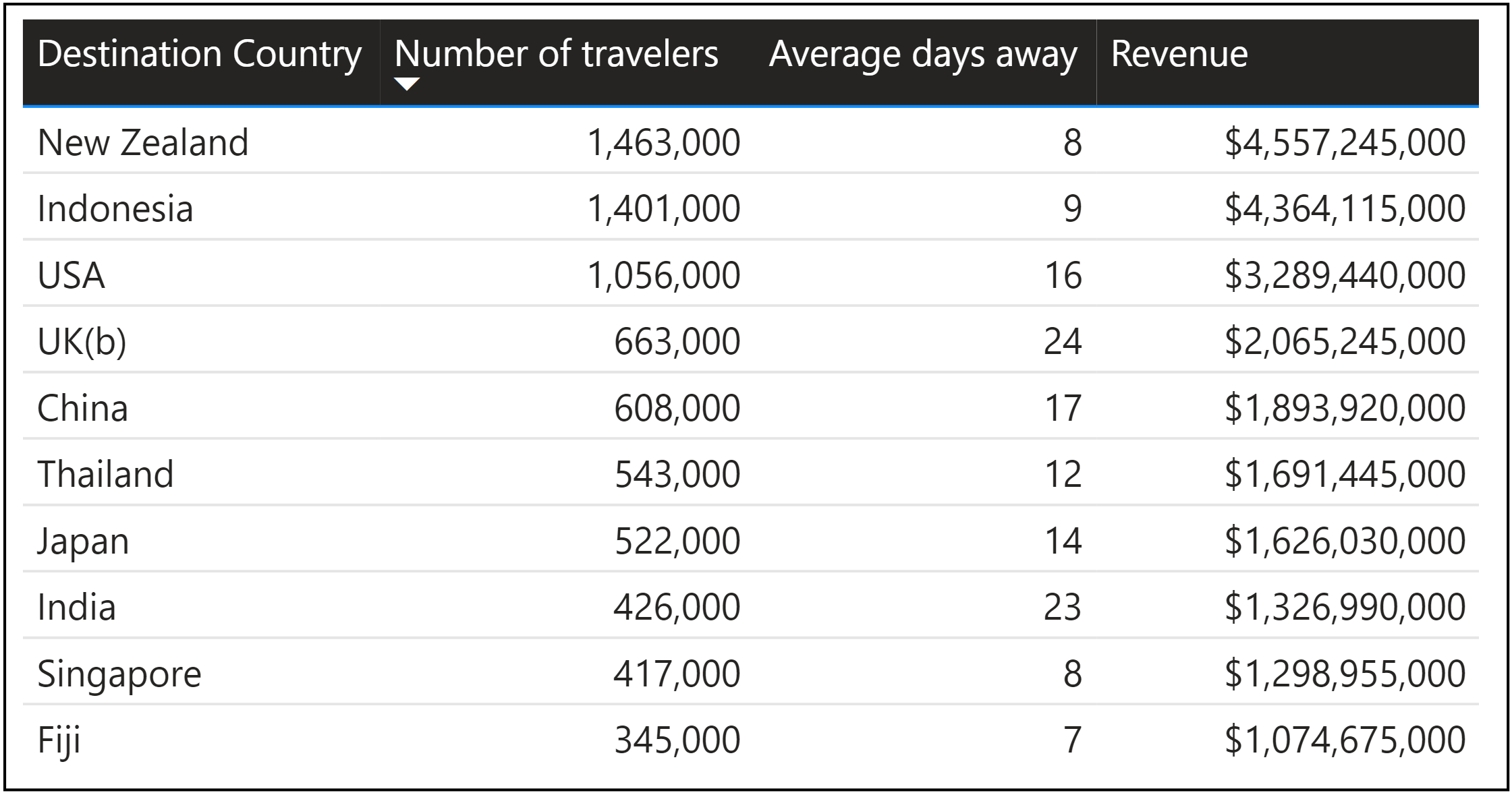 To narrow the focus of the analysis, Decision Inc. analysed the above indicators across Australia’s 10 most popular travel destinations according to ABS data released prior to the pandemic, ranked by the revenue each nation accrued from travelling Australians: